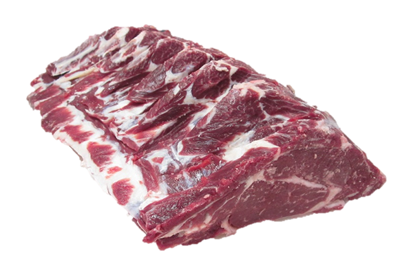 The STX Beef Lip-On is produced from the primal rib. The chine bone, backstrap, lifter meat, feather bones and back ribs are removed. The short plate is removed by a straight cut, no more than 2” from the rib eye at the loin end and 2” from the rib eye at the chuck end. Lip thickness will be no greater than 1.5“thick.